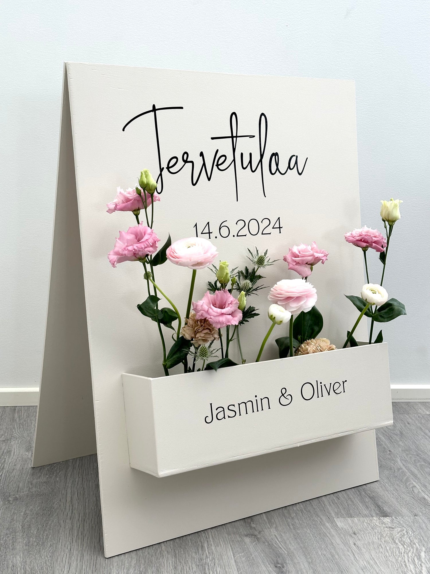Valmistamme käsityönä upeat akryylikyltit häihin ja muihin juhlin. Valikoimastamme löydät esimerkiksi tervetuloa-kyltit, pöytänumerot, paikkakortit, kakunkoristeet, kirjanmerkit, infokyltit ja paljon muuta. Kaikki tuotteet ovat muokattavissa asiakkaan toiveiden mukaan. Kysy rohkeasti, mikäli kaipaamasi tuote puuttuu valikoimastamme.