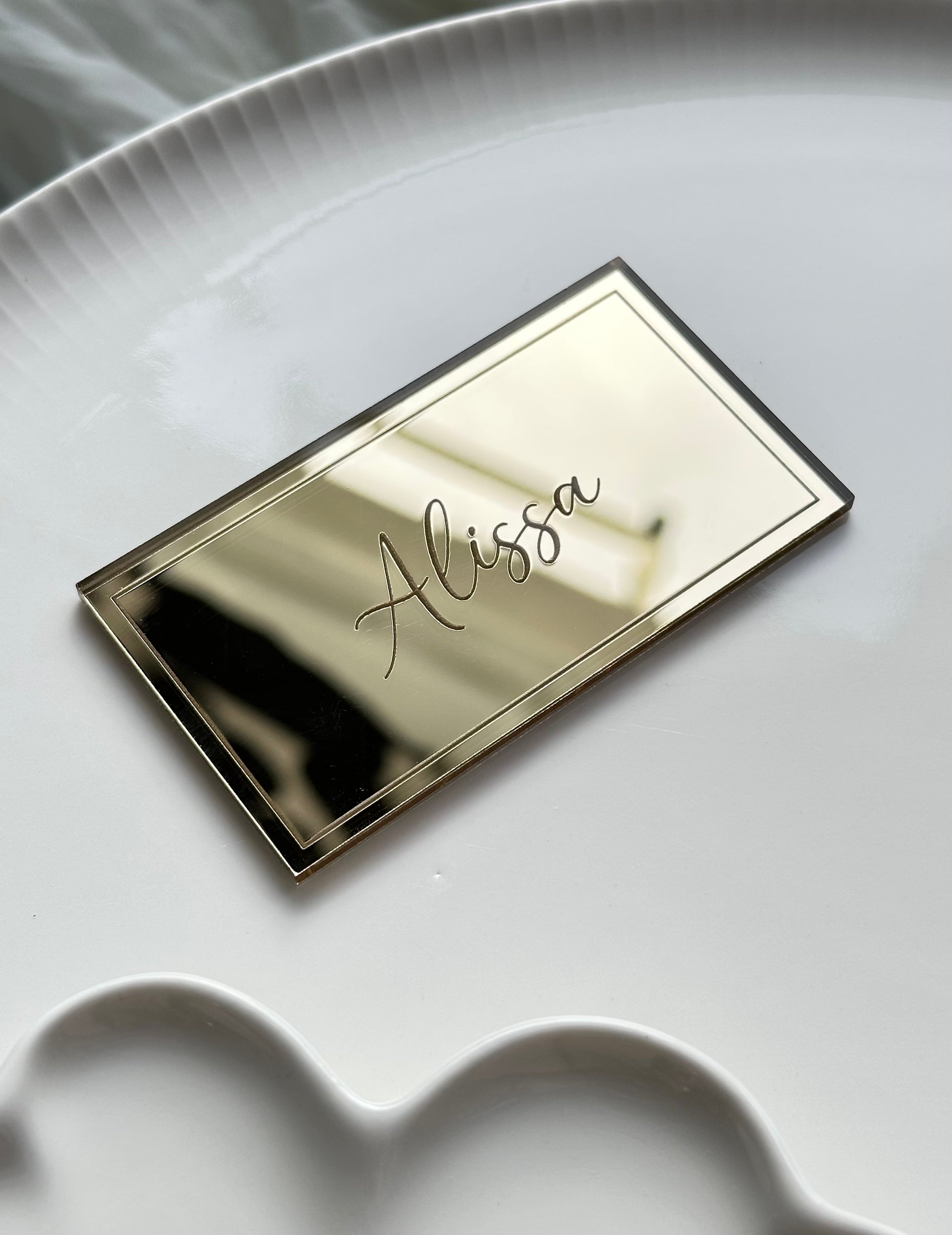 Luo tyylikäs ja mieleenpainuva kattaus tällä upealla peilikultaisella akryylisella häiden paikkakortilla. Jokainen paikkakortti valmistetaan korkealaatuisesta peilipintaisesta akryylistä ja kaiverretaan yksilöllisesti vieraasi nimellä, mikä tekee siitä ylellisen ja ajattoman yksityiskohdan hääkattausta varten.